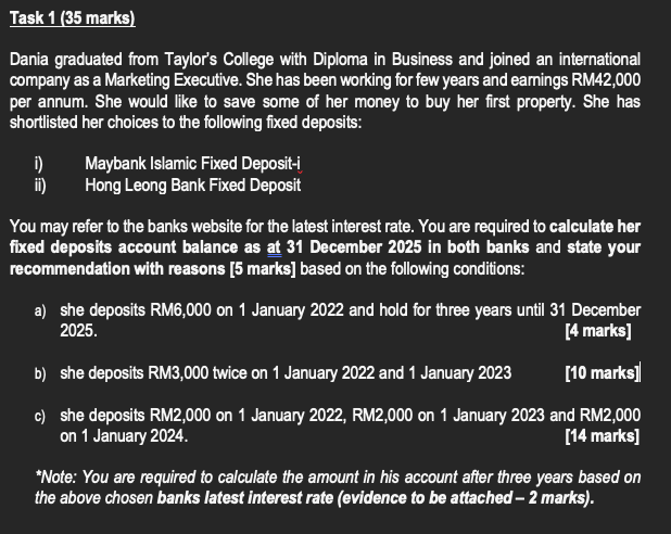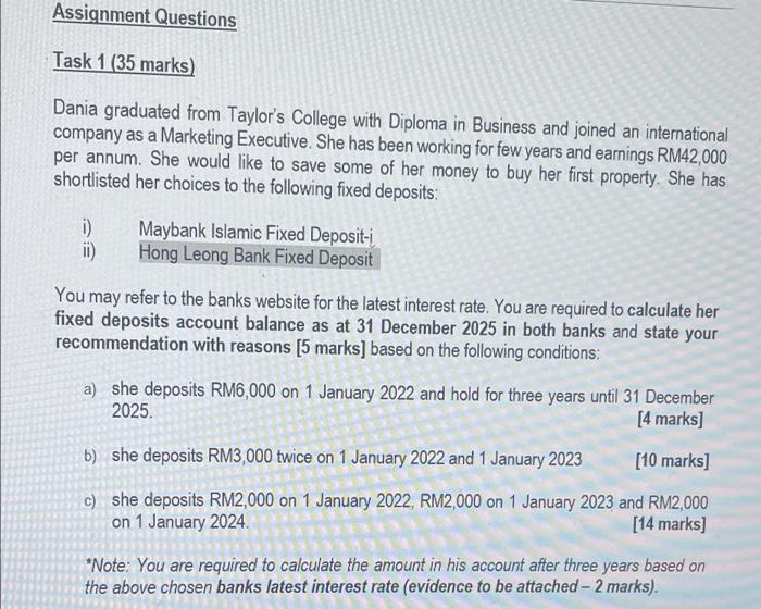 Solved Task 1 35 Marks Dania Graduated From Taylor S Chegg Com